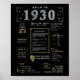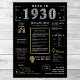 Revenez à 1930 avec notre affiche numérique captivante, riche de faits historiques, de faits saillants et d'intrigants bouts d'antan. Décorée de faux accents d'or et d'argent sur fond noir frappant, ornée d'icônes distinctives et d'une typographie audacieuse, cette affiche dégage une élégance intemporelle. Parfait pour déclencher des conversations lors de fêtes d'anniversaire ou d'anniversaires, et lorsqu'il est élégamment encadré, il se transforme en gardien chéri, insufflant tout espace avec un charme nostalgique. Surprenez vos proches avec notre affiche imprimable Back in 1930, un cadeau unique qui grouille de nostalgie et de personnalité. Surplombant des perspectives fascinantes, il propose un voyage personnalisé à travers l'histoire, ce qui en fait un choix idéal pour commémorer un événement marquant d'un anniversaire. Plongez dans la riche tapisserie des années 1930, explorant des événements importants, des phénomènes culturels, des inventions révolutionnaires, les coûts typiques des biens, les tendances de la mode et les noms populaires de bébé de l'époque. De la construction monumentale du barrage Hoover et du pont Golden Gate à des jalons scientifiques comme la découverte de Pluton et du neutron, notre affiche capture l'essence d'une période transformatrice. Entrez dans le monde glamour des années 1930 avec un aperçu des tendances de la mode comme les robes Flapper et les Casquettes Cloche, aux côtés de termes d'argot qui définissaient l'époque. Découvrez le coût moyen d'objets de la vie quotidienne comme une miche de pain ou un gallon de gaz, offrant un aperçu fascinant de la vie quotidienne il y a près d'un siècle. Avec notre affiche minutieusement dressée, plongez-vous dans les vues, les sons et les sensations d'une époque révolue, célébrant l'héritage durable des années 1930 dans le style.