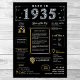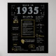 Embarquez pour un voyage captivant qui remonte à 1935 avec notre affiche numérique exquise, riche de faits historiques, de faits saillants et d'idées intrigantes du passé. Enrichi de faux accents d'or et d'argent sur fond noir frappant, orné d'icônes distinctives et d'une typographie audacieuse, ce poster dégage une aura d'élégance intemporelle. Qu'il s'agisse d'animer des discussions animées lors de fêtes d'anniversaire ou d'anniversaires, ou lorsqu'il est encadré avec grâce, il se transforme en gardien chéri, insufflant tout espace avec un sens captivant de la nostalgie. Dégustez vos proches avec notre affiche imprimable Back in 1935, un cadeau distinctif débordant de nostalgie et de caractère. Surplombant un panorama captivant, il offre un voyage personnalisé à travers l'histoire, ce qui en fait le choix idéal pour commémorer un événement marquant d'un anniversaire. Plongez-vous dans la riche tapisserie de 1935, explorant des événements importants, des phénomènes culturels, des inventions pionnières, des coûts typiques des biens, des tendances de mode et des noms de bébés populaires de l'époque. De la construction monumentale du barrage Hoover et du pont Golden Gate à des découvertes scientifiques révolutionnaires comme Pluton et le neutron, notre affiche résume l'essence d'une période de transformation. Entrez dans le monde glamour de 1935 avec des aperçus des tendances de la mode comme les robes Flapper et les Casquettes Cloche, accompagnés de termes en argot qui définissaient l'époque. Explorez les coûts moyens d'articles quotidiens comme une miche de pain ou un gallon de gaz, offrant un aperçu captivant de la vie quotidienne il y a près d'un siècle. Avec notre affiche méticuleusement conçue, plongez-vous dans les vues et les sensations d'une époque révolue, célébrant l'héritage durable de 1935 avec un style inégalé.