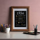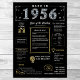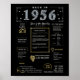Entrez en 1956 avec notre affiche d'anniversaire numérique captivante, remplie de faits historiques, d'événements remarquables et d'histoires intrigantes du passé. Ornée d'élégants détails dorés et argentés contre un arrière - plan noir audacieux, avec des symboles uniques et un texte élégant, cette affiche d'anniversaire dégage un charme intemporel. Qu'il s'agisse d'allumer des conversations lors de réunions d'anniversaire ou de se faire chérir comme gardien, il évoque des souvenirs nostalgiques. Notre affiche d'anniversaire offre un aperçu de 1956, explorant des aspects comme le revenu moyen, les inventions populaires, les événements importants, les tendances de la mode et l'argot de l'époque. Il met en lumière des moments clés tels que la première émission de télévision couleur, le baby-boom d'après-guerre, l'essor du rock and roll et le développement du vaccin contre la polio. Des inventions notables comme le photocopieur, la batterie alcaline et la bombe à hydrogène sont également présentées, montrant les avancées technologiques de l'époque. Dans l'ensemble, l'affiche d'anniversaire saisit l'essence de la vie dans les années 1950, englobant la technologie, les frais de vie et les tendances culturelles comme la musique et la mode. Il sert de pièce de conversation mémorable lors de fêtes d'anniversaire et d'anniversaires et fait un souvenir réfléchi lorsqu'il est encadré.