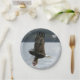 Dekoriert mit einem Bild eines amerikanischen Bald-Adlers (Haliaeetus leucocephalus), der wegfliegt und mit einem in den Talonen von Blackstone Bay im Prinz William Sound von Alaska geklatschten Fischkadaver gefangen ist. von Ted Raynor