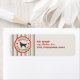 Frohe Weihnachten vom Hund! Altes Emblem Abzeichen mit Golden Retriever Silhouette und die Worte Frohe Weihnachten in Vintager Schrift, auf einem barbershop Streifen Muster Hintergrund. Perfektes Urlaubsgeschenk für Tierfreunde, Haustierbesitzer und Sportler oder Hundefreunde.