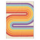 This artwork channels a retro graphic spirit, forming the letter‑like curve with parallel bands of red, orange, yellow, light blue, teal, and purple. The layered arcs flow in harmony, evoking the bold optimism of 1970s design. Set against a soft beige background, the vibrant rainbow palette stands out with clarity and rhythm. The composition balances simplicity and dynamism, creating a timeless visual that feels both nostalgic and modern.