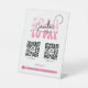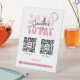 Trendy und schicke Business Scan to Pay-Zeichen mit Platz für 2 QR-Codes und Ihren Firmennamen und Ihre Kontaktdaten. Dieses Zahlungszeichen für Geschäftsfunktionen Retro-Schriftart in rosa und trendige Skripte für Ihren Firmennamen, oder Sie können sogar Ihr Logo hinzufügen. Mit diesem QR-Code-Tabellentop-Schild wird es für Ihre Kunden einfacher denn je, eine Bezahlung direkt von ihrem Telefon oder Tablett aus zu machen, perfekt für den Einsatz an Ihrer Kasse, Kunsthandwerksmärkten oder in Ihrem Geschäft.