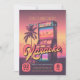Retro 30th Birthday Karaoke Party Invitation. Un design audacieux et coloré avec une illustration de juke-box à l'ancienne devant un beau coucher de soleil violet, rose et orange avec des palmiers en arrière - plan. Le mot Karaoke figure en bonne place dans la typographie vintage. Célébrez votre anniversaire d'étape avec vos amis tout en dévoilant votre rockstar interne! Ce sera une nuit à retenir.