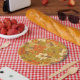 Diese Teller sind in einer Farbpalette aus den 1960er/1970er Jahren in Orangetönen, Olivgrün und Senfgelb gehalten.