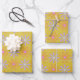 Retro 60er Mod Pop Blume Muster in Gelb Geschenkpapier Set