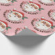 Machen Sie Ihre Weihnachtsfeier und Helle mit diesem farbenfrohen Verpackungspapier. Es hat einen Hintergrund mit rot, gelb, grün und rosa gestreiften Farbtönen mit einem skurrilen Kachelmuster des Weihnachtsmanns.