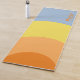 Im Retro-Stil im 70er gefertigte Yoga-Matte in Blau-, sonnigen Orange- und Gelbtönen. Der Stil, die Größe und die Farbe des Schriftartes können Sie ändern, indem Sie auf "Bearbeiten mit dem Designwerkzeug" klicken.