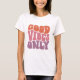 Retro 70's Typografie Gute Vibes nur Frauen T - Shirt! Wählen Sie aus verschiedenen Farben und Stilen. Tolle Geschenkidee! Gepasst an Größe 100% Baumwolle Doppelnadeln, Ärmel mit Häkchen und Waschkalte der unteren Maschine importiert
