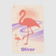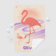 Dieses coole, personalisierte, Retro-Handtuch besticht durch eine fette Flamingo-Silhouette mit fließenden Wellenlinien und einen verblassten Sonnenaufgang in sanften Pastelltönen aus Pfirsich, Lavendel und Sand.