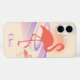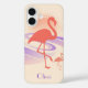 Dieses coole Retro-personalisierte Gehäuse verfügt über eine fette Flamingo-Silhouette mit fließenden Wellenlinien und einen verblassten Sonnenbrand in sanften Pastelltönen aus Pfirsich, Lavendel und Sand.