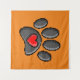 Retro 80er Videospiel 8 Bit Pixel Art Hund Pfoten drucken. Gestaltbarer Wandteppich. Orange Hintergrund. Geschenkidee für Hundefreunde jeden Alters.