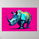 Verwandeln Sie Ihre leeren Wände in eine Hommage an das goldene Zeitalter der digitalen Unterhaltung mit diesem auffälligen Pixel-Art-Poster. Dieses horizontale Kunstwerk zeigt ein majestätisches Nashorn, das vollständig aus klassischen 8-Bit-Pixeln konstruiert ist. Die kräftige, hochgesättigte Farbpalette aus Cyan und Orange erzeugt ein faszinierendes, kontrastreiches Bild, das sofort ins Auge fällt und jedem Raum eine massive Dosis an Spaß und Retro-Energie einflößt.