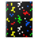 Classic video game fans will love this fun, retro style 8-bit graphics pattern in bright colors! The simple, square shapes stand out on a black background. It's shown here on a classic notebook for school. Adjust the pattern size and move it around to your preference. It's a fun notebook for any gamer kid!
