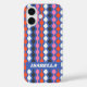 Retro Abstrakte Streifen Blau Rosa Personalisierter Name Handy Fall