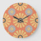 Retro Abstrat Blue and Orange Daisies Pattern Große Wanduhr