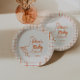 Wie Sie sehen, hat diese alberne, geschlechtsneutrale Baby Duschpapiertafel, eine einzigartige, elegante, orangefarbene, geschlechtsneutrale Babydusche, eine gut gestaltete Vorlage. Mit orangefarbenen handgezogenen Gänsen und handgeschriebenen Namen und Datum in orangefarbener Schrift. Und orangefarbene "Umrandungsrahmen und karierte Quadrate. Alles auf cremefarbenem Hintergrund. Sie können diese einfach anpassen, indem Sie auf den Personalisieren-Button klicken.
