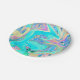 Retro Aqua Blue Liquid Art on Abstrakt Hydrangeas Pappteller