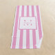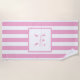 Erstellen Sie Ihr eigenes personalisiertes Badetuch mit Ihrem individuellen Monogramm-Initial und dem Namen auf einem rtro-gestreiften Hintergrund in ästhetischer Rosa und Weiß.