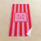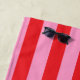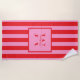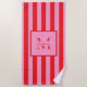 Erstellen Sie Ihr eigenes personalisiertes Strandtuch mit Ihrem individuellen Monogramm-Initial und Namen auf einem rtro gestreiften Hintergrund in ästhetischer Rosa und Rot.