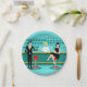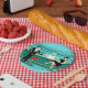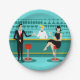 Jede Stunde ist glückliche Stunde mit diesem Retro Bar-Papier-Teller. Die modernen Ausrüstungsbeschreibungen der Mitte des Jahrhunderts ein vibrierendes, Sechzigerjahre Art, Minimalist, Cartoonzeichnen von einem noblen, Cocktail-Bar. Gegen den Hintergrund einer Aquawand, können wir Reihen der Getränkgläser sehen. Mindestens wir können die aquamarinen Silhouetten der Getränkgläser sehen. Urteilend von den Formen des Stemware, ist dieses Bar gut ausgerüstet, Ihre Pfeife nasszumachen, was auch immer Ihre Getränkpräferenz. Ein kompetentester und personable Barkeeper bemannt das aquamarine Bar mit gelben Akzenten. Der junge Barkeep trägt ein pristine, weißes Shirt mit schwarzer Bogen-Krawatte. Seine frisch-gesichtigen guten Blicke, blondes Haar und schwarzen Hipstergläser geben uns jeden Grund, zu glauben, dass er irgendein seine Tage als kämpfender Schauspieler oder Superhero verbringt. In einer Hand übergibt der hübsche Mixologist einem Kunden einen Martini auf der gegenüberliegenden Seite des Bar. Wartete Kunden ist ein breit-geschulterter Herr in einem schwarzen Anzug und in einer roten Krawatte. Er ist die Art des Gefährten, der beschrieben wird, wie groß, dunkel und hübsches, selbst wenn es noch Stunden bis Feierabend ist. Es scheint, ein Rot- und Chrom-Barschemel mit Namen Herrn Debonairs auf ihm geben. Jedoch, anmaßend nicht zu sein, fragt er die Frage, "begnadigt mich. Ist dieser genommene Sitz?" Er fragt dem Raben behaarte Gallone auf dem benachbarten Barschemel. Sie ist eine wirkliche Art "des Mädchens nebenan", wenn Sie geschehen, neben einer fehlerlosen Schönheit mit einer Zahl zu leben, die nicht beendigt. Sie trägt ein schwarzes Kleid und hält einen Martini in einer Hand. Sie hofft, dass sie und der nähernde Herr mehr gemeinsam haben, das ihre Getränkpräferenz und Wahl der Garderobe färben. Sie sieht wie dieser Abend got gerade interessantes aus. Beifall zu Ihnen!