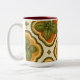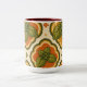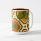 An accent mug featuring a basil leaf pattern with retro-inspired curves in green, gold, cream, and rust tones. Fresh, decorative, and easy to use, this design works well for coffee, tea, kitchen decor, and gift ideas for herb lovers and home cooks.