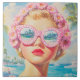 Retro Beach Girl mit Blumenbrille Fliese