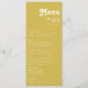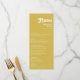 Ce menu de dîner de mariage rétro plage | or est parfait pour votre mariage d'été simple, vintage, coloré, tropical et bohème. Sa police unique de style bohème du milieu du siècle donne à ce design une ambiance hippie classique minimaliste et funky. Si vous recherchez un design qui présente des couleurs océaniques côtières rustiques et vives pour votre mariage de destination créatif des années 70 sur la plage, ce produit et sa collection de mariage coordonnée sont ce que vous recherchez. N'hésitez pas à changer la couleur et à ajouter vos propres illustrations, graphiques ou photos. Si vous avez des questions sur la conception de ce produit, n'hésitez pas à nous contacter !