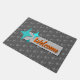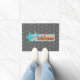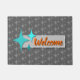 Orange Empfang mit Retro-Aqua-Sternen auf einem grauen Sternmuster Hintergrund.