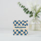 Retro Beige & Blue Wavy Checkerboard with QR Code Quadratische Visitenkarte