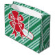 Ein großer roter Bogen schmückt dieses Aqua- und grün gestreifte Urlaubsgeschenk-Tasche. Diese Weihnachtsgeschenktasche ist ideal für Männer, Frauen, etc... Das Design stammt aus der Originalkunst.