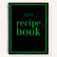 Dieses Vintag inspirierte, leere Kochbuch ist das ideale Geschenk für alle, die Lieben zum Kochen oder Backen haben. Mit der schwarzen Retro-Abdeckung und der personalisierten grünen Schrift beeindruckt es jeden aufstrebenden Koch.