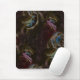 Atomische Wirbel, Raumzeit im 50er, modernes Retromuster Mitte des Jahrhunderts. Schwarz mit lila, blauen, gelben Wirbel.