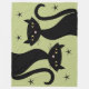Schwarze Katzen mit schwarzen Sternen und einem "Weizengras-Grün"-Hintergrund, der an die 50er Jahre erinnert.