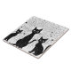 Ikonische Retro-schwarze Katzen und atomare Sternexplosionen Muster; inspiriert durch Retro-Design Mitte des Jahrhunderts.