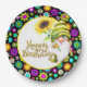 Eine farbenfrohe Retro-Party-Platte, Gemustert in einem Retro-60er-Design mit einem Niedlichen kleinen Gnome