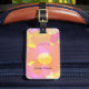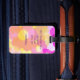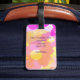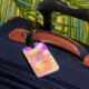 Erleben Sie Ihr Reiseerlebnis mit einem individuellen Gepäckanhänger, das mit einem coolen Blumendesign der 70er Jahre geschmückt ist, in zarten Sommertönen in Rosa, Gelb und Pfirsich. Die Personalisierung ist ein Cinch, perfekt für den angesagten Globetrotter.