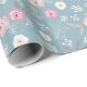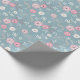 Retro-Blumenmuster. Rosa und weiße Blumen auf einem gedämpften graublauen Hintergrund.