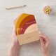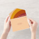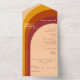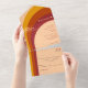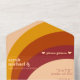 Klassische Vintage 70er Retrofarben mit gewölbten Bogenreihen, die alle in einer Hochzeitseinladung zusammengefasst sind. Cooles Design mit Hippie-Farben Creme, Orange und Rot. Personalisieren Sie es, indem Sie die Braut und Bräutigam Namen und Hochzeitsdetails.