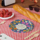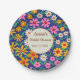Das ist eine hübsche Papiertafel aus Brautparty mit rosa, orangefarbenen, gelben und weißen Blume im Retro-Boho-Stil mit Blätter auf dunkelmarineblau-blauem Hintergrund. Sie können die Details mit dem Personalize-Button ändern.