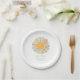 Teller für kundenspezifisches Papier. Entworfen mit einer Retro Boho Sonne in einem orangen gelben mit hellblauen Sonnenlicht. Stöbern Sie in unserem Bohemischen Sunshine Theme für die passenden Waren aus Papier und Party. Napkins, Einladungen, Dankeschön-Karten, Babydusche, Spiele und mehr
