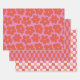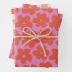 Retro Bold Pink and Orange Floral and Checks Geschenkpapier Set