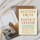 Beeindrucken Sie Ihre Hochzeitsgäste mit dieser lustigen und mutigen, ganz nach Maß gefertigten Hochzeitseinladung mit Foto! Im Südwesten inspirierte, mutige Typografie in Retrogold, staubblauer Farbe und Rosa in Rosa ist der perfekte Akzent für Ihr eigenes Foto oder Bild auf der Rückseite. Sie können alle Texte und Farben an Ihre eigene Veranstaltung anpassen! Ideal für einen Western, einen Strand, eine moderne, Vintage oder eine Hochzeit in Urlaubsort - diese Einladung ist vielseitig! Vergessen Sie nicht, Ihr eigenes Foto hochzuladen, und Karo die passenden Artikel in der Kollektion Suite!