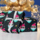 Niedliche und lustige Retro-hellrosa und schwarz-groovy Sonnenbrille mit Weihnachtspapier vom Weihnachtsmann.