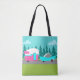 Dieser Retro Camper/Anhänger und Auto ganz über DruckTaschen-Tasche kennzeichnet eine moderne Mitte des Jahrhunderts, unbedeutendes Cartoonzeichnen, das Sie verlässt vorzubereiten, um zur offenen Straße zu nehmen. Eine Ehrerbietung zu den fünfziger Jahren, dieses Ausrüstungsbeschreibungen ein Vintages Türkisauto mit der weißen Spitze, einen kitschy Reiseanhänger zu seinem abschließenden Bestimmungsort ziehend. Der tadellos wieder hergestellte, Retro RV hat eine Pink, weiße Spitzenhälfte der unteren hälfte und einen Türkisblitzbolzen, der die zwei trennt. Die Tür in der Seite des Campers ist auch Türkis. Der abschließende Akzent ist der Flügel des heißen Rosas, der von der Rückseite dieses Zuhause auf Rädern hervorsteht. Die glücklichen Menschen fahren hinunter eine graue Straße. Die Fahrbahn wird durch Stoff, grünes Gras umgeben. Im Hintergrund können wir die aquamarinen Silhouetten eines wirklichen Waldes der Zedernbäume, gegen einen Aquahimmel mit den geschwollenen, hellblauen Wolken sehen. Dieser Entwurf ist für jeder von pensioniertem Hippies, von Vogel-Hipstern oder von jedermann perfekt, der will, um einige große Kindheits-Erinnerungen wieder zu erleben. Das beste Teil ist, dass niemand fragt, "sind wir dort schon?"