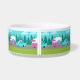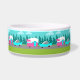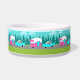 Diese Retro Camper-/Anhänger-und Auto-Keramik Pet Schüsseleigenschaften ein die moderne Mitte des Jahrhunderts, unbedeutendes Cartoonzeichnen, das Sie verlässt vorzubereiten, um zur offenen Straße zu nehmen. Eine Ehrerbietung zu den fünfziger Jahren, dieses Ausrüstungsbeschreibungen ein Vintages Türkisauto mit der weißen Spitze, einen kitschy Reiseanhänger zu seinem abschließenden Bestimmungsort ziehend. Der tadellos wieder hergestellte, Retro RV hat eine Pink, weiße Spitzenhälfte der unteren hälfte und einen Türkisblitzbolzen, der die zwei trennt. Die Tür in der Seite des Campers ist auch Türkis. Der abschließende Akzent ist der Flügel des heißen Rosas, der von der Rückseite dieses Zuhause auf Rädern hervorsteht. Die glücklichen Menschen fahren hinunter eine graue Straße. Die Fahrbahn wird durch Stoff, grünes Gras umgeben. Im Hintergrund können wir die aquamarinen Silhouetten eines wirklichen Waldes der Zedernbäume, gegen einen Aquahimmel mit den geschwollenen, hellblauen Wolken sehen. Dieser Entwurf ist für jeder von pensioniertem Hippies, von Vogel-Hipstern oder von jedermann perfekt, der will, um einige große Kindheits-Erinnerungen wieder zu erleben. Das beste Teil ist, dass niemand fragt, "sind wir dort schon?"