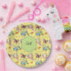 Retro-Camping-Teller zum Thema Papier. Retro-Design, werden Sie sich nach dem großen Outdoor sehnen! Bearbeiten von Text und Bild. Sie können Ihre eigenen Wörter hinzufügen oder das mittlere Bild ganz löschen, wenn Sie eine schlichte Platte bevorzugen. Rette auch mit dem Abwasch!