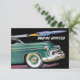 Einladungen mit einer Vintagen Illustration eines Oldtimer und einer Rakete aus dem Jahr 1950. Passen Sie sie mit Ihrem eigenen Text an. Ideal für eine Geburtstagsfeier für Typ. Retro cool!