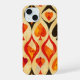 Dieses Kunstwerk zeichnet sich durch ein gewagtes und lebendiges Muster aus, das von klassischen Kartenspielkarten-Anzügen wie Herz, Pik, Diamanten und Clubs inspiriert wird. Das Design beinhaltet diese ikonischen Symbole in länglichen, teardrop-förmigen Formen, Set gegen einen warmen, Gradienten Hintergrund von Rot, Orangen und Gelb. Die stilisierten Anzüge sind in Schwarz und Rot umrissen und bilden einen auffallenden Kontrast, der die dynamischen Formen und Farben unterstreicht. Die sich überlappenden Elemente und die Vintage Textur rufen ein nostalgisches Gefühl hervor, das modernes Design in der Mitte des Jahrhunderts mit einer spielerischen Drehung verbindet.