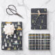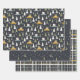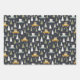 Retro Cars Weihnachtswald Bäume Grau Schwarz Geschenkpapier Set
